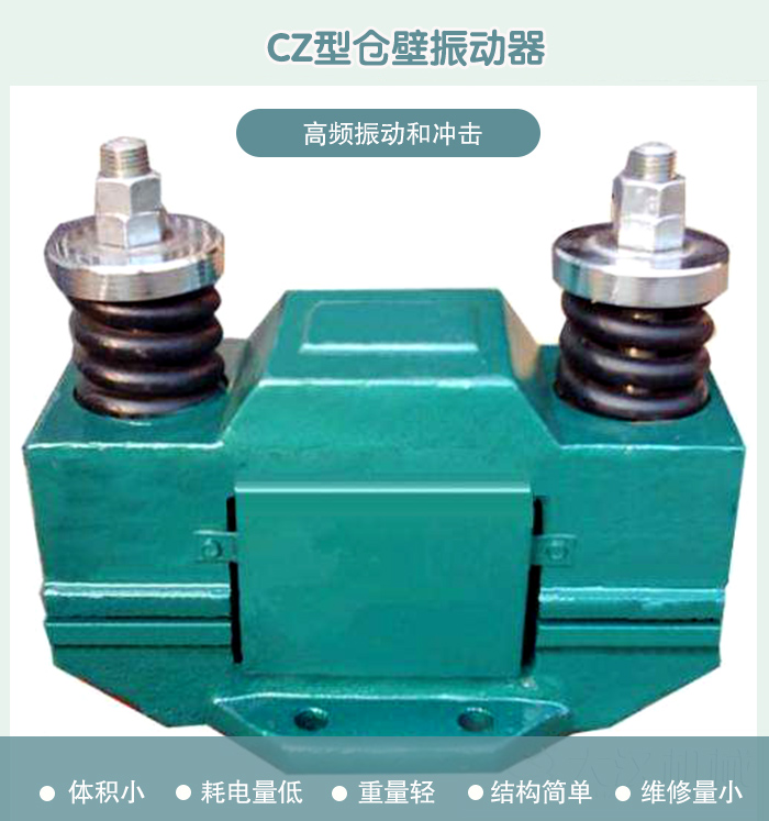 產(chǎn)品簡(jiǎn)介:CZ電磁倉(cāng)壁振動(dòng)器產(chǎn)品概述 CZ倉(cāng)壁振動(dòng)器是靠高頻振動(dòng)和沖擊力,有效地消除物料由于內(nèi)摩擦、潮解、帶電、成分偏析等原因而引起的堵塞、搭拱現(xiàn)象,使物料從料倉(cāng)口順利排出,保證穩(wěn)定地供料所必需的設(shè)備。 CZ型倉(cāng)壁振動(dòng)器使用行業(yè) 已廣泛地應(yīng)用于礦山、冶金、化工、建材、機(jī)械等各行業(yè)。 CZ電磁電磁倉(cāng)壁振動(dòng)器特點(diǎn): CZ型倉(cāng)壁振動(dòng)器具有體積小、耗電量低、重量輕、結(jié)構(gòu)簡(jiǎn)