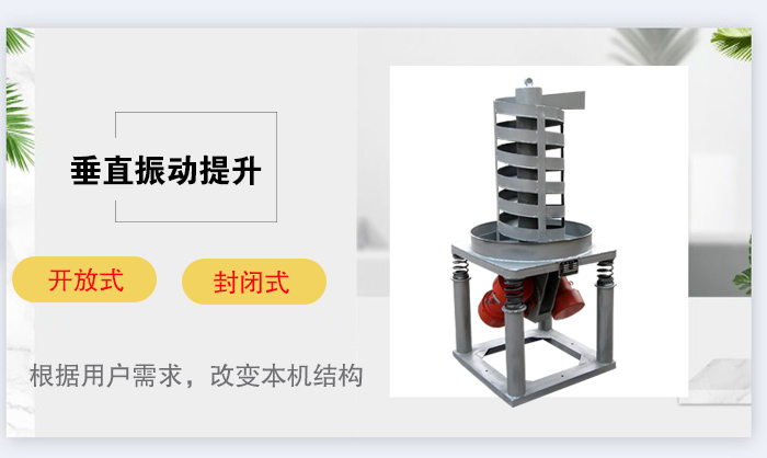 垂直振動(dòng)提升機(jī)具有從下到上的輸送物料的功能。按不同的生產(chǎn)工藝要求分為:開放式和封閉式兩種不同結(jié)構(gòu)。封閉式輸送能防止有害氣體和粉塵溢散。根據(jù)用戶需求,改變本機(jī)結(jié)構(gòu)。