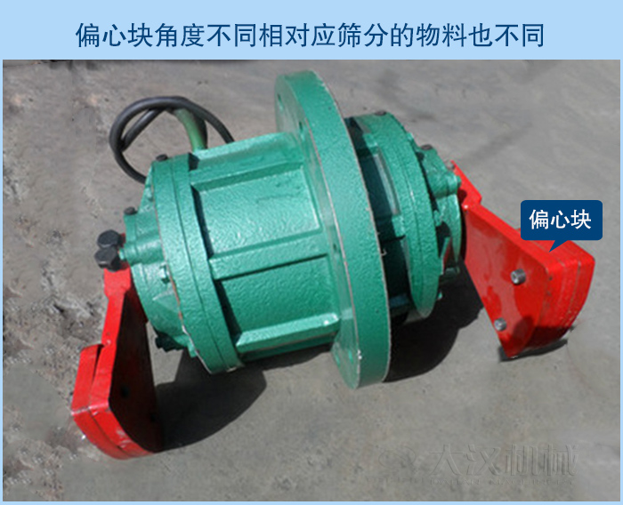 振動電機的激振力是高速旋轉(zhuǎn)的偏心塊產(chǎn)生的離心慣性力。改變偏心距,從而改變超聲波振動篩激振力的幅值,以達(dá)到調(diào)節(jié)激振力的作用。通過調(diào)整激振力的大小,從而達(dá)到最高生產(chǎn)率的效果,延長振動電機乃至超聲波振動篩的使用壽命。